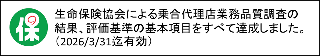 ※生命保険乗合代理店業務品質評価とは、金融庁との対話を踏まえ、保険業界全体で「顧客本位の業務運営」の実践を求められている中、実態を含めた消費者目線の評価を行い、消費者にとって理想的な保険代理店像を目指すために生命保険協会が公表している評価制度です。