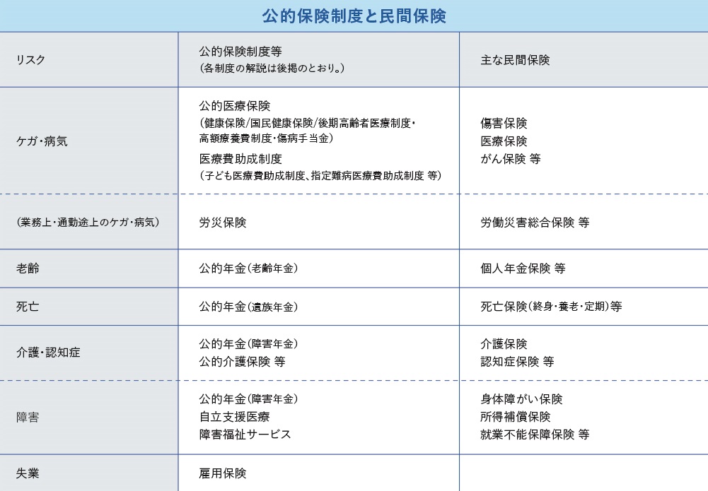 ケガや病気などのリスクに備える保険には「公的保険」と「民間保険」があります。