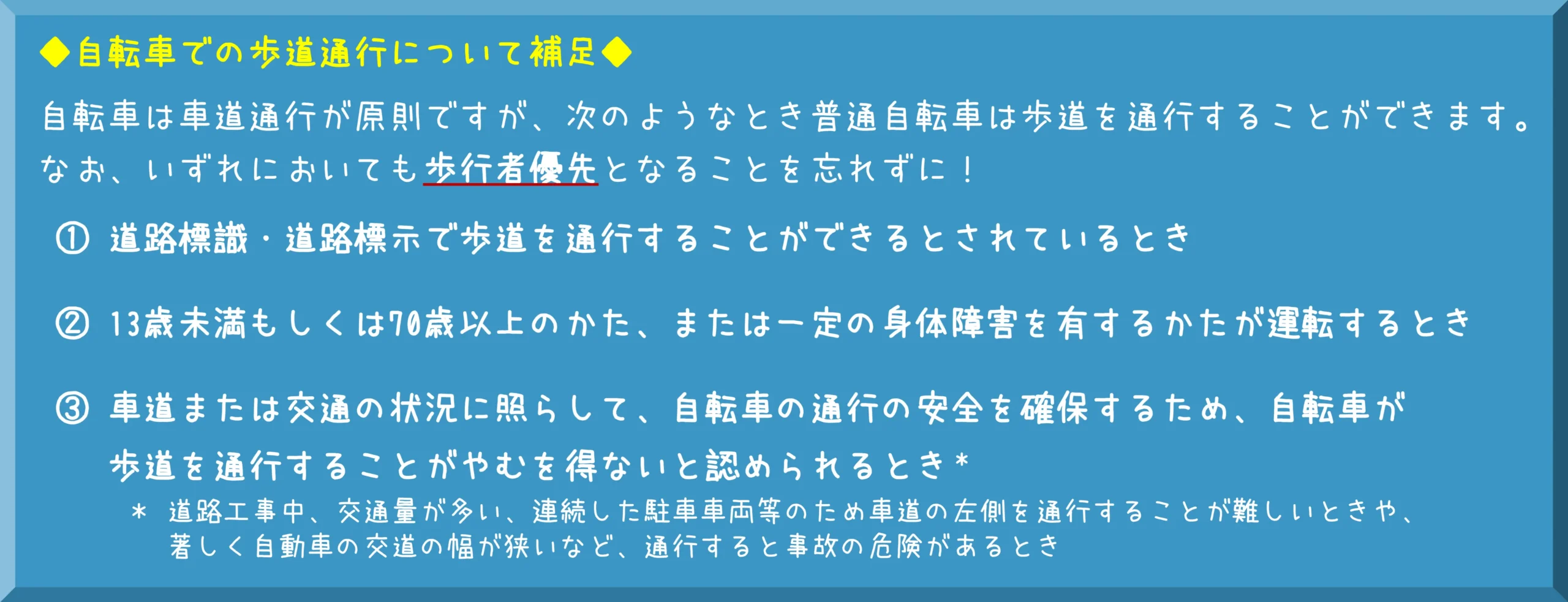 状況によって対応が分かれるため、通行時は必ず標識を確認しましょう。
